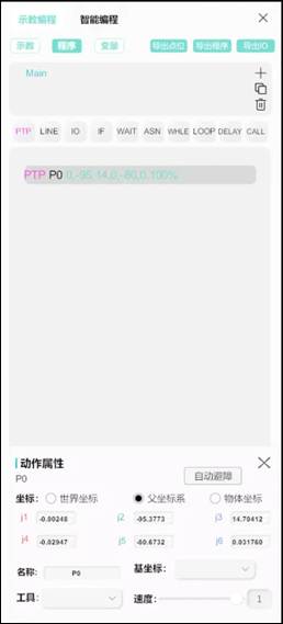 示教面板上方“導(dǎo)出點位”、“導(dǎo)出程序”“導(dǎo)出I0”按鈕,分別支持對當(dāng)前點位表、程序、10的導(dǎo)出。