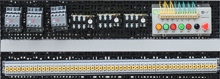 組成:繼電器、交流接觸器、熱繼電器、按鈕指示燈、導軌、線槽、雙層端子;