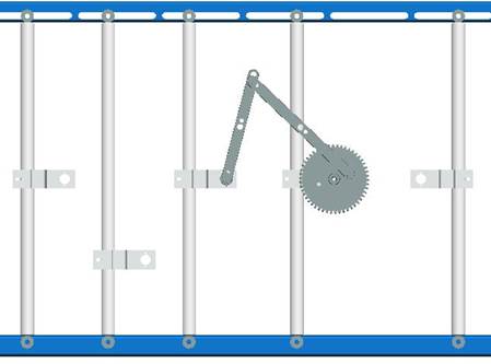 應(yīng)用舉例:利用連桿上M點近似直線段,可應(yīng)用于搬運貨物的輸送機(jī)上,及電影放映機(jī)的抓片機(jī)構(gòu)等。
