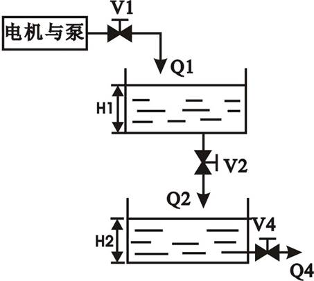 設(shè)上水箱的進(jìn)水量為Q1,水箱的液面高度為H1,下水箱的進(jìn)水量為Q2,出水量為Q4,水箱的液面高度為H2。