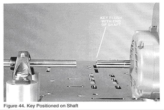 E. 將鍵放置在軸上的鍵槽內,其末端與電機軸的端部對齊,如圖44所示;