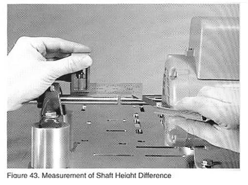 力時,葉片的厚度合適),葉片的厚度就是兩軸的高度差,如果軸的高度差在0.25~0.4mm的范圍內,進入下一步驟,否則重新調整軸承支架的高度直到滿足要求。