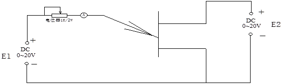 按圖2-2-13接線,按下控制屏上的“啟動”按鈕,然后緩慢調(diào)節(jié)電樞電源,電壓為20V,同時,監(jiān)視電壓表的讀數(shù),調(diào)節(jié)0~30V直流可調(diào)穩(wěn)壓電源電位器,電壓從零開始調(diào),同時監(jiān)視電壓表、電流表的讀數(shù),當電流表的值突然增加,電壓表的值隨著0~30V直流可調(diào)穩(wěn)壓電源電位器增加突然下降到某一電壓值,繼續(xù)增加電壓值時,電流會一直增加,電壓基本保持不變,(電壓調(diào)節(jié)到20V時停止調(diào)節(jié))。表示管子正常工作,說明此時的管子是好的。