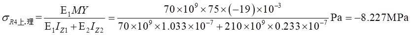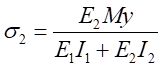 因此,可得到復(fù)合梁Ⅰ和復(fù)合梁Ⅱ正應(yīng)力計算公式分別為