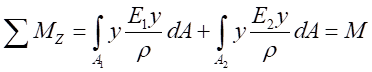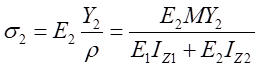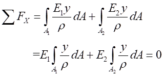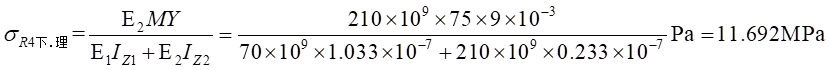 (2)物理關(guān)系。依胡克定律,而由式(1)帶入,可以得出不同材料區(qū)的彎曲正應(yīng)力分別為: