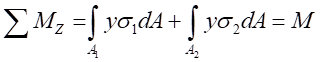組成的內(nèi)力系,在橫截面上形成一個內(nèi)力偶矩M,即為橫截面上的彎矩M,即: