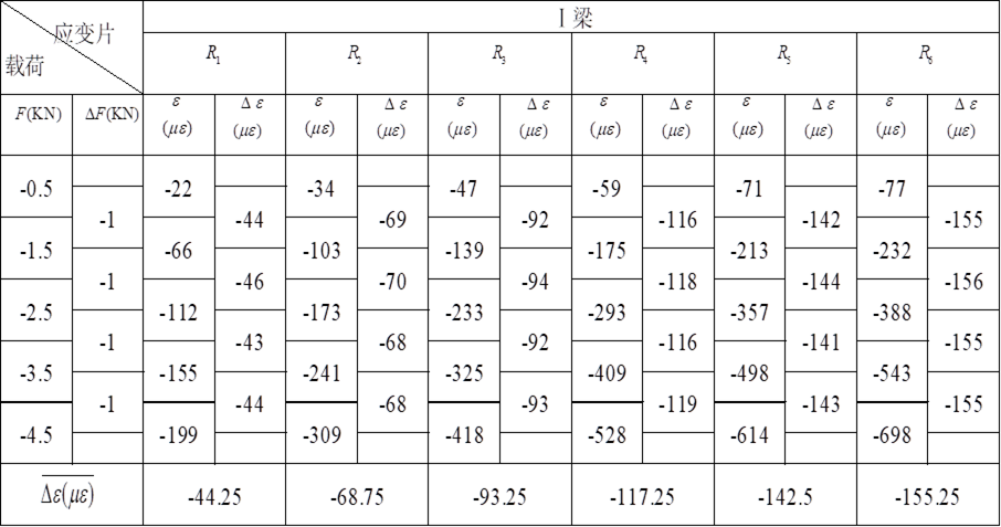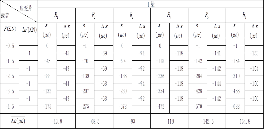 表6-1 Ⅰ梁應(yīng)變數(shù)據(jù)表