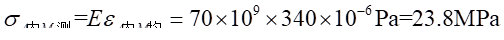 載荷F作用在試件(見圖8-1)的對稱軸線上時,A-A截面有軸力,有彎矩,由于對稱條件沒有剪力。方框試件的彈性模量為70GN/m2。軸力引起的正應(yīng)力為:
