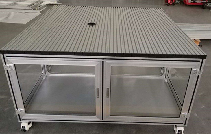 a)框架為高強度鋁型材結(jié)構(gòu),臺架四周采用優(yōu)質(zhì)鋼板封閉,表面噴涂處理。