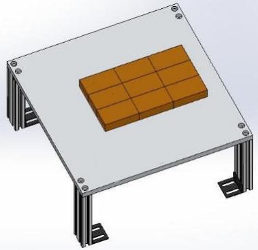 本單元由鋁板和鋁型材組合制成,尺寸為300*200*150mm;碼垛料塊為尼龍材質(zhì)外形尺寸為80*40*20,可根據(jù)實驗要求碼垛多種形式。