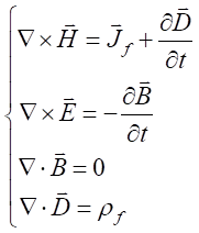 在理想介質(zhì)中,既沒(méi)有電荷,也沒(méi)有電流,所以理想介質(zhì)中的電磁場(chǎng)滿足無(wú)源的麥克斯韋方程組。無(wú)源無(wú)耗媒質(zhì)中電磁場(chǎng)滿足麥克斯韋方程: