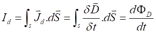 通過(guò)電場(chǎng)中某一截面的位移電流等于通過(guò)該截面電位移通量對(duì)時(shí)間的變化率。