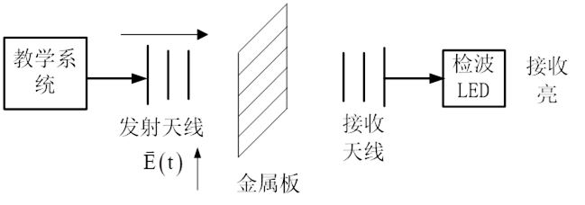 垂直極化波垂直入射到水平縫隙導(dǎo)體平面的透射波;由于滿足邊界條件可以點(diǎn)亮LED燈。垂直極化波垂直入射到垂直縫隙導(dǎo)體平面的透射波;電磁波被截止不滿足邊界條件LED不燈。