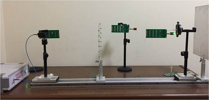 4)將水平水平縫隙柵格平面放入收發(fā)天線中間,觀察LED燈是否被點(diǎn)亮。