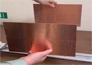 當(dāng)用直射線和兩條反射線疊加相位相等時(shí)LED最亮,相位相反時(shí),接收電磁波抵消LED不亮。移動(dòng)距離中軸線的距離d,接收LED時(shí)滅時(shí)亮,某一個(gè)位置時(shí)達(dá)到最亮。記錄下距離中軸線的距離d,計(jì)算直射線和反射線的距離差值。反射線經(jīng)過導(dǎo)體板反射時(shí)有180度的相位差。