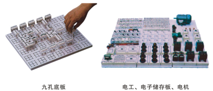 通用電工實驗臺具有較完善的安全保護措施,較齊全的功能。實驗桌中央配有通用電路板,電路板注塑而成,表面布有九孔成一組相互聯(lián)通的插孔,元件盒在其上任意拼插成實驗電路,元件盒盒體透明,直觀性好,盒蓋印有永不褪色元件符號,線條清晰美觀。盒體與盒蓋采用較科學的壓卡式結(jié)構(gòu),維修拆裝方便。元器件放置在實驗桌下邊左右柜內(nèi),大大提高了管理水平,規(guī)劃化程度,大大減輕了教師實驗準備工作。