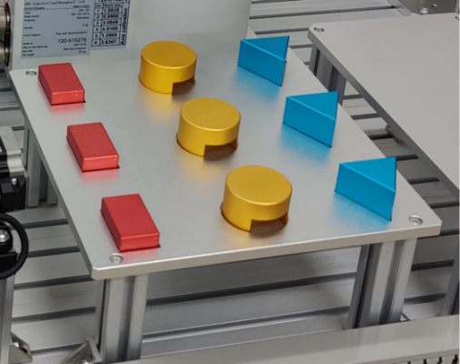 2、流水線模塊:流水線應(yīng)用場景與工廠實際物流情況相似,可進(jìn)行機(jī)器人點位示教編程與調(diào)試,可根據(jù)學(xué)習(xí)內(nèi)容不同而設(shè)置不同挑選形式,可根據(jù)工件不同采用不同的夾取夾具。