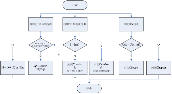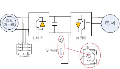 主要為在變流器上添加Crowbar和Chopper電路,并在變流器中配合進(jìn)行相應(yīng)控制: