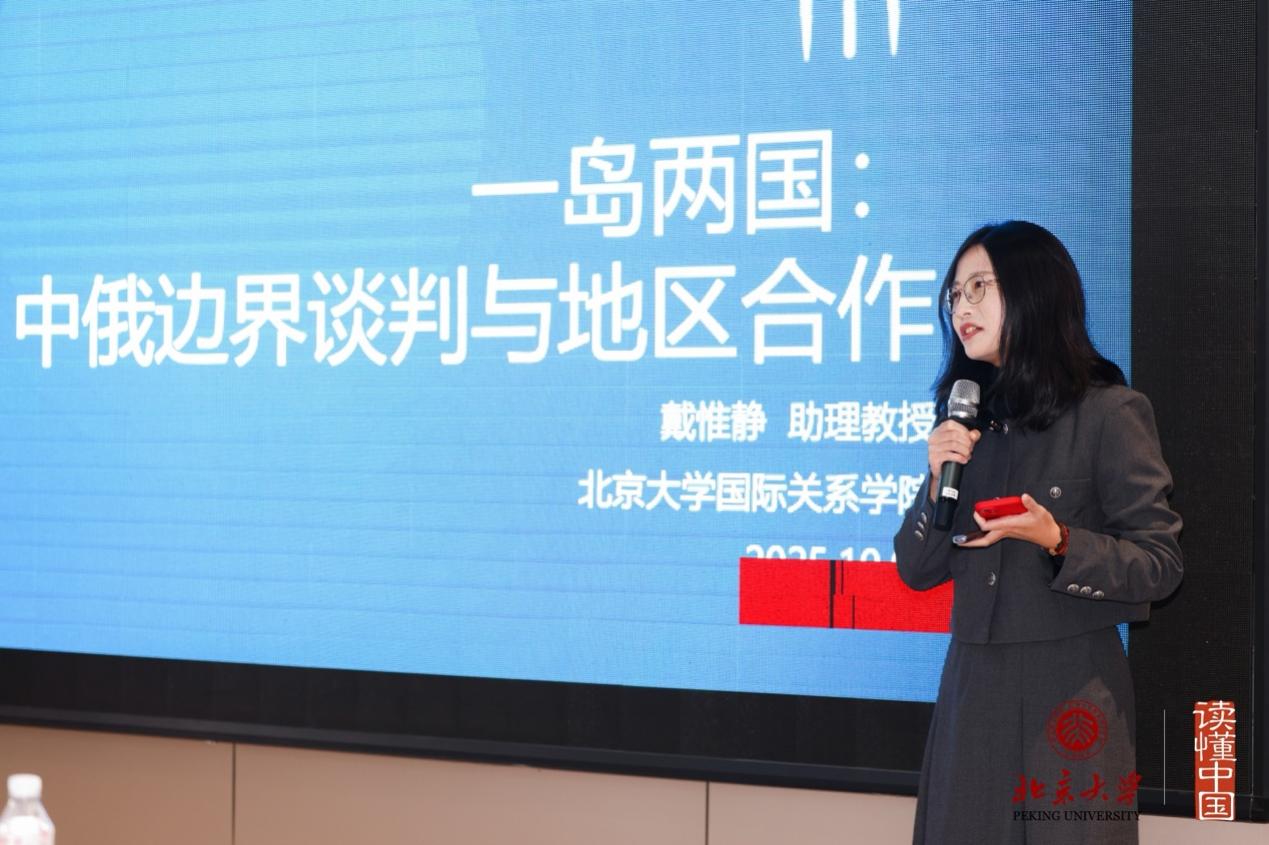 同日,北京大學(xué)國際關(guān)系學(xué)院戴惟靜老師為同學(xué)們講授“一島兩國:中俄邊界談判與地區(qū)合作”的專題課。戴惟靜以自身在莫斯科留學(xué)經(jīng)歷與多年研究經(jīng)驗,帶領(lǐng)同學(xué)們從國際關(guān)系與歷史角度,理解這片中國最東端土地的特殊意義。