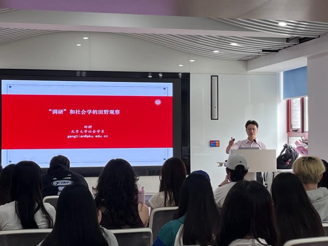 為了讓同學(xué)們在實踐活動中開展深入調(diào)研,“讀懂中國”項目組在行前邀請北京大學(xué)社會學(xué)系副主任田耕給同學(xué)們講授題為“‘調(diào)研’和社會學(xué)的田野調(diào)查”的先導(dǎo)課程。田耕介紹了社會調(diào)查、參與式觀察、人類學(xué)民族志、社會學(xué)民族志等不同的“調(diào)查”類型,并教導(dǎo)同學(xué)們?nèi)绾芜x取合適素材,撰寫詳實的調(diào)研報告。學(xué)習(xí)扎實的先導(dǎo)課程后,同學(xué)們對調(diào)研方法及理論框架有了基本認識,以此開啟一段充實的“讀懂中國”之旅。