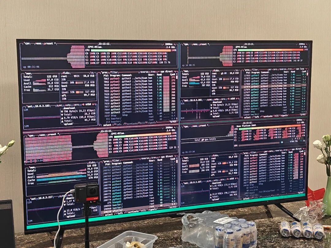 正式比賽過程中,全體隊(duì)員分工協(xié)作、緊密配合,在46小時(shí)限時(shí)內(nèi)相繼攻克三項(xiàng)賽題。在SST(Structural Simulation Toolkit)體系結(jié)構(gòu)模擬器應(yīng)用中,團(tuán)隊(duì)通過多進(jìn)程、多線程測(cè)試與參數(shù)權(quán)衡,高效完成了Risc-V架構(gòu)模擬任務(wù);面對(duì)ECE(Exascale Climate Emulator)氣候仿真題目,隊(duì)員們深入解析仿真流程,運(yùn)用GPU異構(gòu)計(jì)算優(yōu)化參數(shù)配置,持續(xù)提升模擬器性能;神秘賽題ACTS高能物理粒子模擬則考驗(yàn)了團(tuán)隊(duì)快速理解陌生領(lǐng)域、配置環(huán)境與編譯應(yīng)用的應(yīng)變能力。