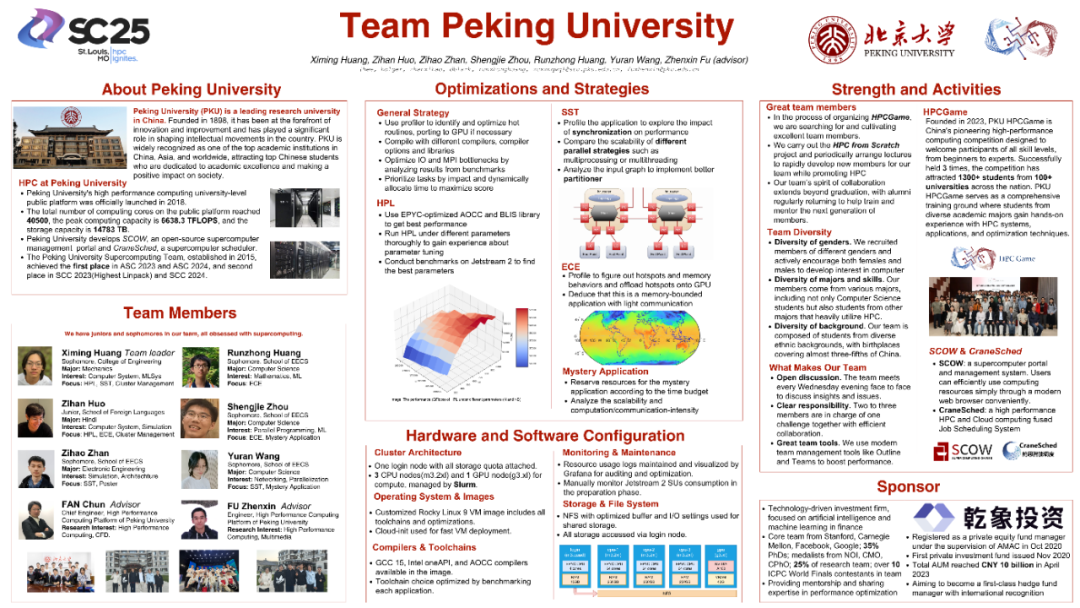 備賽期間,北京大學(xué)超算隊(duì)還得到華為技術(shù)有限公司、乾象投資等合作單位的大力支持,通過技術(shù)交流與資源協(xié)助,助力同學(xué)們深入理解前沿技術(shù)并應(yīng)用于賽事實(shí)踐。