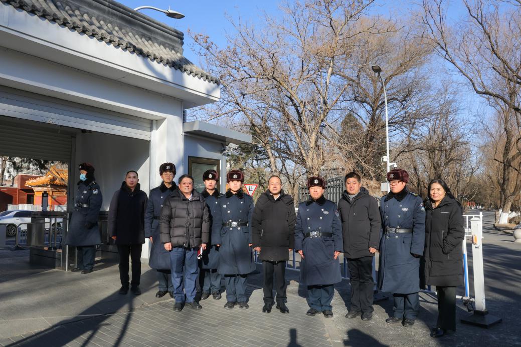 當(dāng)日上午,校黨委書記何光彩一行來到北京大學(xué)人民醫(yī)院,慰問看望特需門診醫(yī)護(hù)人員和胸外科醫(yī)護(hù)人員;在燕園街道辦事處向政務(wù)服務(wù)中心工作人員送上慰問品,祝愿他們工作順利;在學(xué)校西側(cè)門看望了寒風(fēng)中站崗的保安員們,感謝保衛(wèi)部工作人員和全體保安人員為平安校園建設(shè)作出的不懈努力。