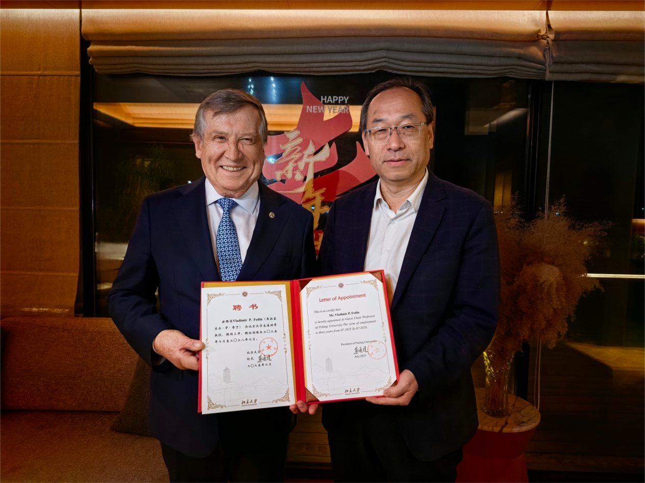 2026年1月7日至10日,俄羅斯聯(lián)邦功勛科學(xué)家、俄羅斯科學(xué)院院士、2025年度中國(guó)政府友誼獎(jiǎng)獲得者弗拉基米爾·P·費(fèi)丁教授,應(yīng)中俄基礎(chǔ)科學(xué)研究院之邀訪問(wèn)北京大學(xué),與化學(xué)及材料科學(xué)領(lǐng)域?qū)W者們開展了系列學(xué)術(shù)交流活動(dòng)。