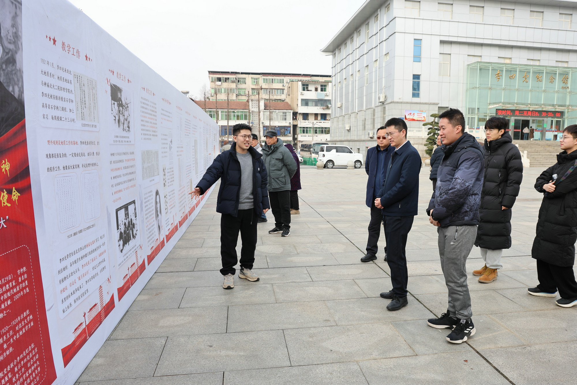 一場跨越千里的“重逢”讓尋根之旅倍添溫情:曾在北大校內(nèi)引發(fā)熱烈反響的“李四光先生在北大”主題展覽,如今也落地先生故里。在詳述李四光建設發(fā)展北大地質(zhì)系歷程的展板前,地球物理研究生黨支部書記袁源擔任講解員,為在場的領導專家和同學們帶來了一堂生動的現(xiàn)場微黨課,深情講述展板背后的燕園往事與科學救國史。