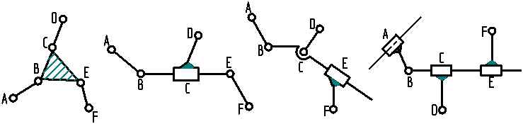 n = 4, P5 = 6的桿組稱為Ⅲ級(jí)桿組,其形式較多,圖3所示的是幾種常見的Ⅲ級(jí)桿組: