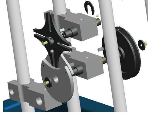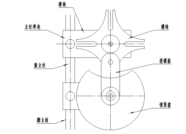 機構(gòu)說明:槽輪機構(gòu)動力性能較差,但若將一個導(dǎo)桿機構(gòu)串聯(lián)在槽輪的機構(gòu)之前,則可改善槽輪機構(gòu)的動力性能。