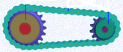 H、  找到適配的鏈條,將鏈條裝在兩鏈輪的輪齒上。裝配結(jié)果如圖2-7所示: