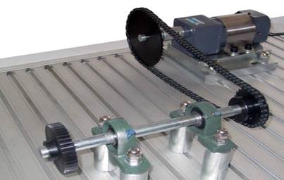 在這個(gè)實(shí)驗(yàn)中,將執(zhí)行安裝步驟和校準(zhǔn)鏈傳動(dòng)系統(tǒng),保證兩傳動(dòng)軸的平行度。完成搭接和校準(zhǔn)后將在下個(gè)實(shí)驗(yàn)中運(yùn)行電機(jī)。
