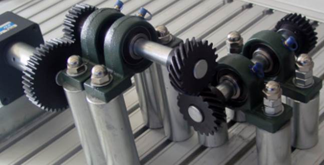 電機(jī)一臺(tái)、電機(jī)座、標(biāo)準(zhǔn)斜齒圓柱齒輪一對(duì),軸承座,立柱,傳動(dòng)軸(φ20活塞桿)、T型螺釘、M12螺母、百分表一個(gè)、游標(biāo)卡尺一把、直尺一把(20cm)、米尺一把、轉(zhuǎn)速傳感器、各種安裝工具等。