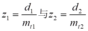 假設(shè)兩輪的端面模數(shù)分別為mt1與mt2,分度圓直徑分別為d1與d2,則兩輪齒數(shù)分別為