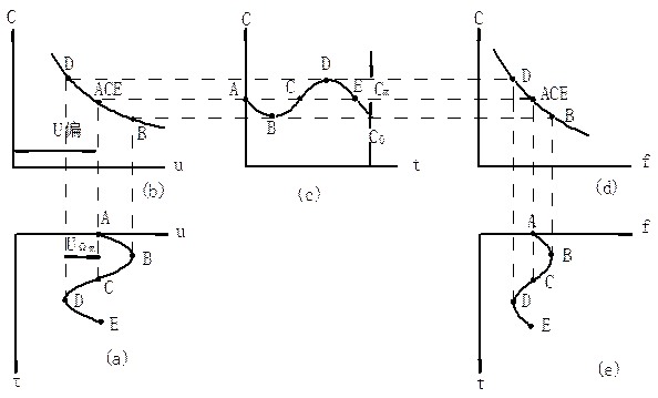 變容二極管的調頻原理可用圖6-1說明。由變容二極管的電容和電感組成振蕩器的諧振電路,其諧振頻率近似為 。在變容二極管上加一固定的反向直流偏壓U和調制電壓(圖a),則變容二極管電容量將隨 改變,通過二極管的變容特性(圖b)可以找出電容C隨時間的變化曲線(圖c)。此電容C由兩部分組成,一部分是 為固定值;另一部分是 為變化值,是變化部分的幅度,則有