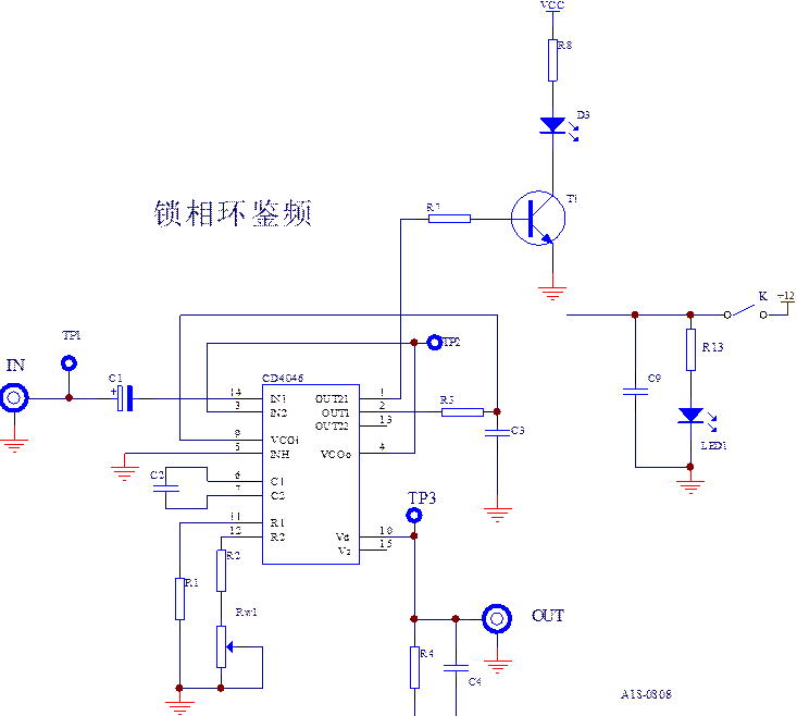 采用CD4046鎖相環(huán)集成芯片來實現(xiàn)鑒頻,其鑒頻實際電路如圖11-4所示。