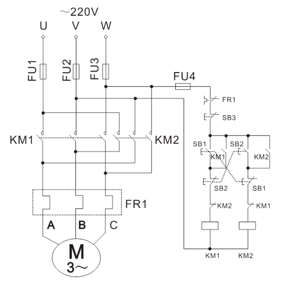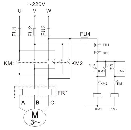 1、倒順開關正反轉控制線路: