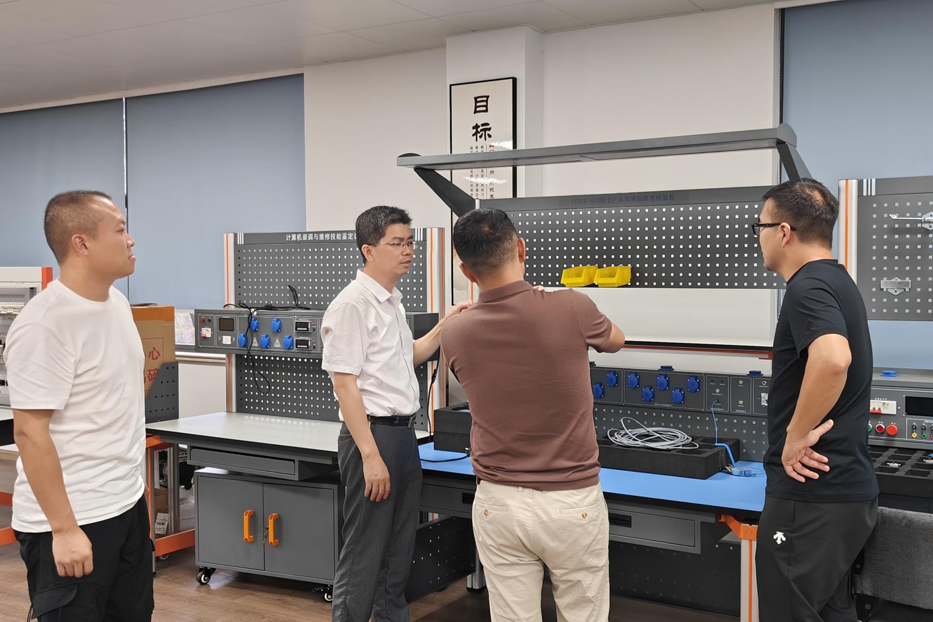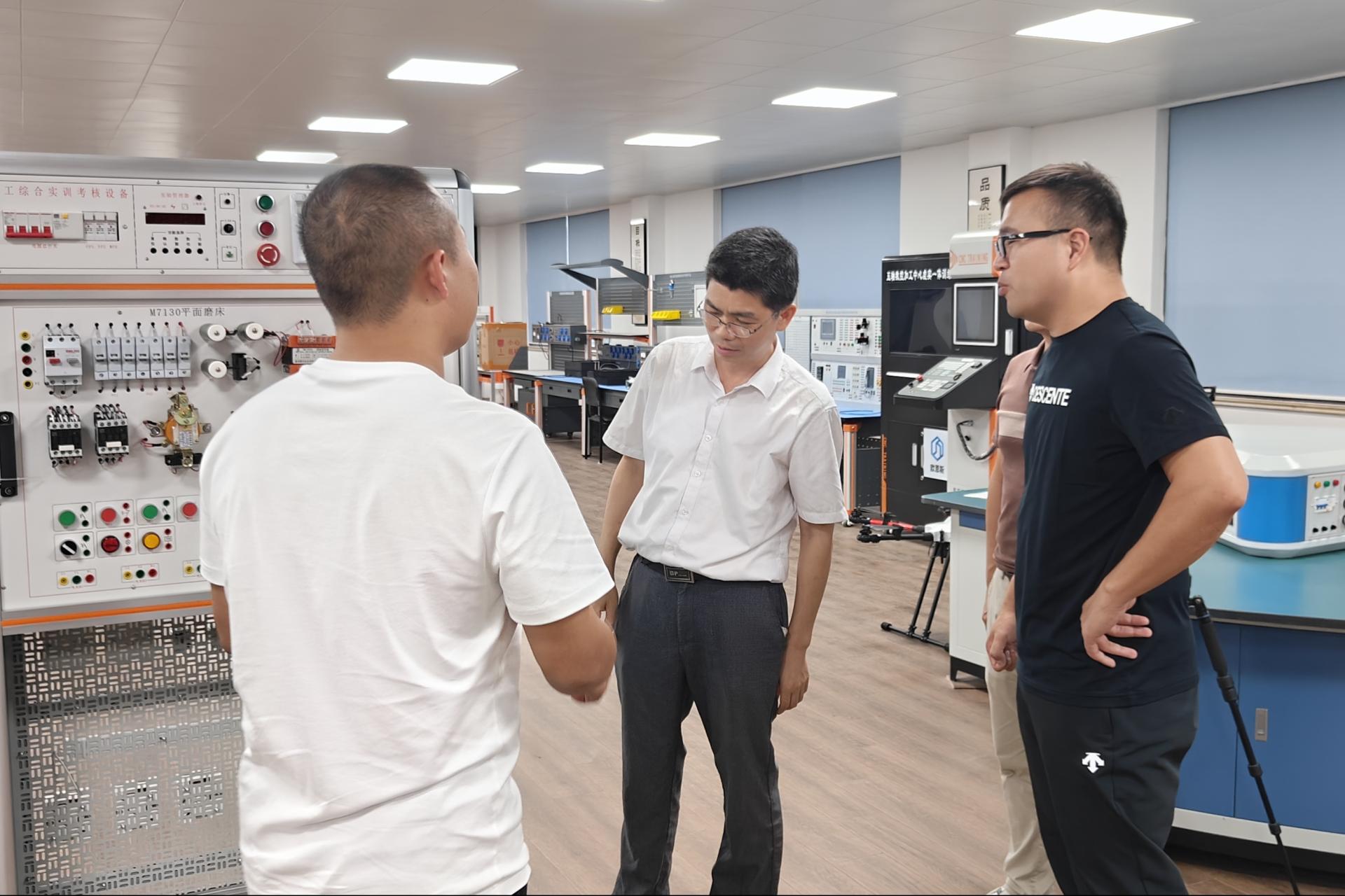 考察團(tuán)抵達(dá)后受到企業(yè)熱情接待,雙方圍繞實(shí)驗(yàn)室擴(kuò)建規(guī)劃展開務(wù)實(shí)磋商。劉朝福副院長系統(tǒng)闡述了學(xué)院機(jī)械工程領(lǐng)域人才培養(yǎng)的長遠(yuǎn)規(guī)劃,明確提出升級后實(shí)驗(yàn)室需具備先進(jìn)性、綜合性與創(chuàng)新性的建設(shè)要求。他強(qiáng)調(diào),高水平實(shí)踐教學(xué)平臺建設(shè)是深化產(chǎn)教融合、培育高素質(zhì)應(yīng)用型人才的核心抓手,對提升學(xué)院人才培養(yǎng)質(zhì)量與未來發(fā)展具有重要意義。柴鵬、王述宇結(jié)合一線教學(xué)與設(shè)備運(yùn)維經(jīng)驗(yàn),圍繞設(shè)備選型、功能區(qū)科學(xué)布局、技術(shù)參數(shù)精準(zhǔn)設(shè)定及后續(xù)維護(hù)保障等關(guān)鍵細(xì)節(jié),與企業(yè)技術(shù)團(tuán)隊(duì)深入研討,確保實(shí)驗(yàn)室建設(shè)充分貼合教學(xué)實(shí)際需求。