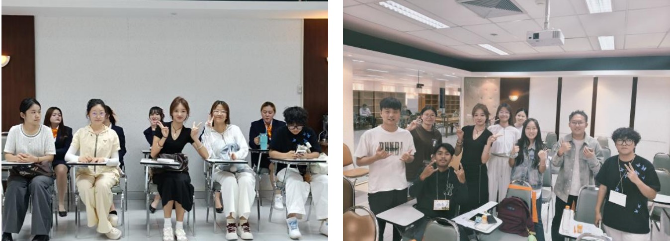 到達翁查瓦里功大學后,翁大老師首先給同學們開啟了泰語的啟蒙教學。從基礎(chǔ)會話到日常表達,老師以生動情境教學引導零基礎(chǔ)的同學快速融入。課堂互動中,同學們不僅掌握了實用語言技能,更通過語言載體感知泰國禮儀文化與社會風貌,為后續(xù)文化體驗活動奠定基礎(chǔ)。