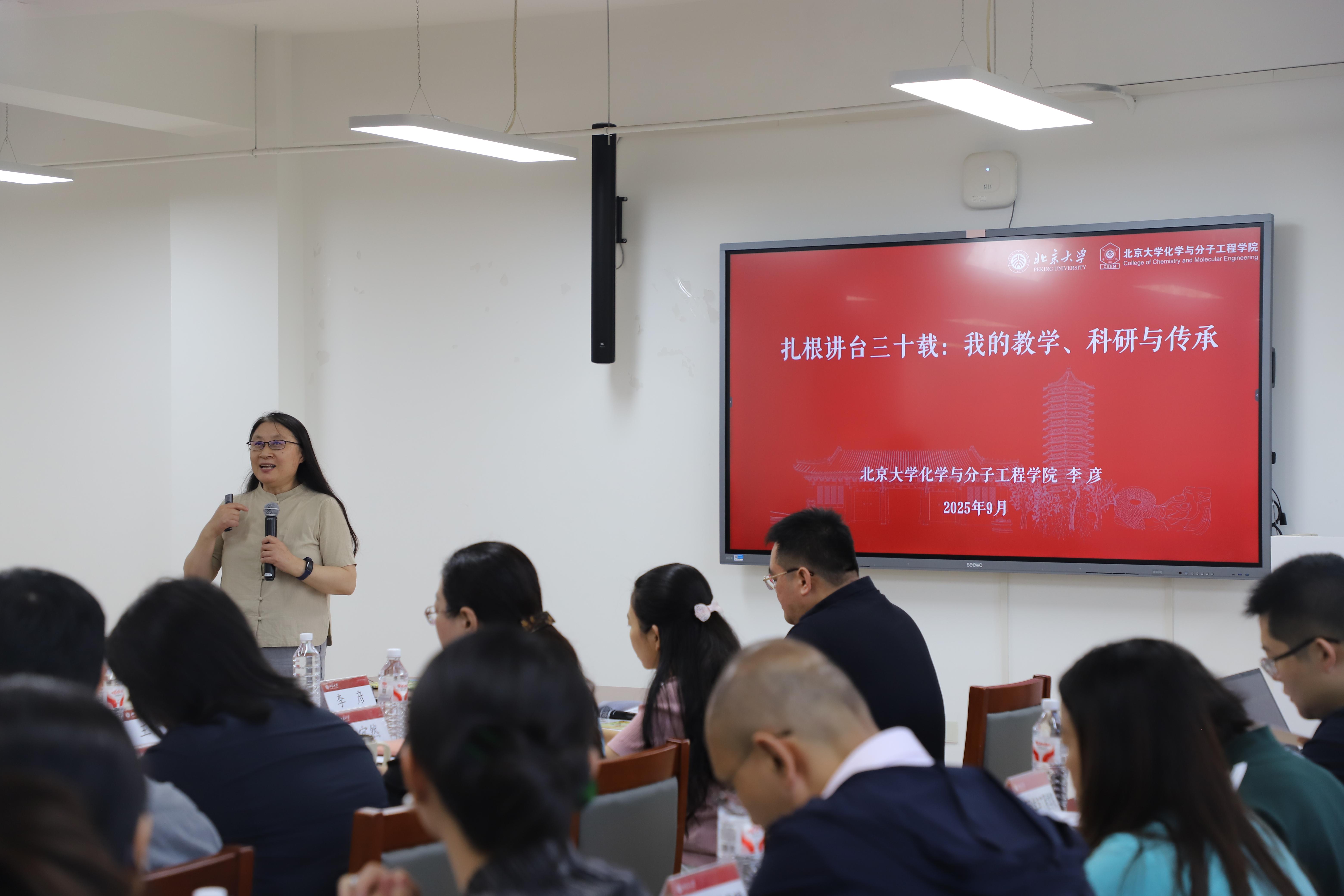 李彥以“扎根講臺30載:我的教學、科研與傳承”為題,結合30余載執(zhí)教生涯,深情回顧了自己教書育人的心路歷程。她從2001年接手國家級精品課程《普通化學》講起,生動講述了在前輩大師傅鷹、張青蓮、徐光憲等先生的精神感召下,如何將“課比天大”作為自己的信條,20余年如一日默默堅守在教學一線。談及教學與科研的關系時,李彥以自己攻克碳納米管國際性難題的經歷為例,展示了教學相長的生動實踐。她表示,正是在《普通化學》課堂上講授的酶催化反應原理給了她科研靈感,進而提出基于結構匹配的催化劑設計方案,最終成功攻克了“制備結構一致的單壁碳納米管”這一世紀難題。而這一重大科研突破,又成為她課堂教學中最鮮活的案例,真正實現(xiàn)了教學、科研與人才培養(yǎng)的有機融合與良性互動。