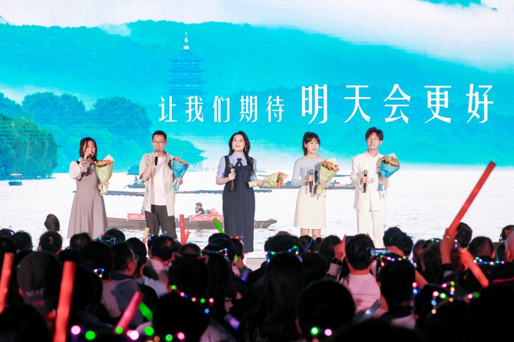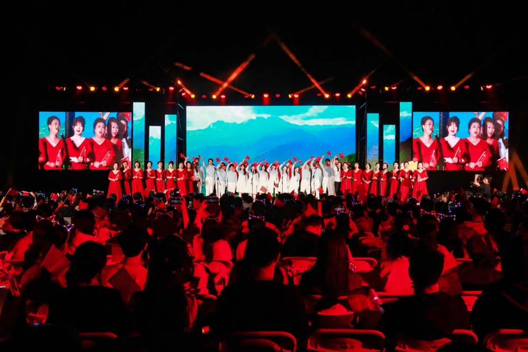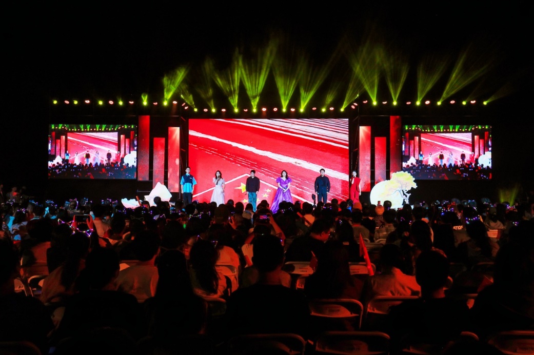 十佳歌手聯(lián)袂獻唱的《我愛你中國》向祖國送出最深情的告白,用歌聲獻禮祖國華誕。大屏幕上一幅幅中國壯麗風光、建設成就和人民幸福生活的影像徐徐展開,與歌聲交織成一曲動人的視聽交響。 “我愛你中國,心愛的母親”唱響時,全場觀眾深受感染,情不自禁地起身揮動手中的國旗,一同加入合唱。霎時間,草坪化為一片涌動的紅色海洋,激昂的歌聲與澎湃的激情交織,將晚會現(xiàn)場化作一堂生動而深刻的愛國主義課堂。