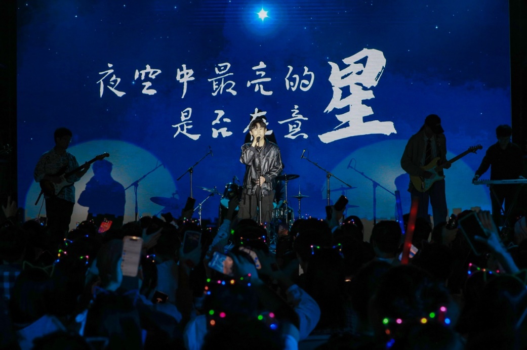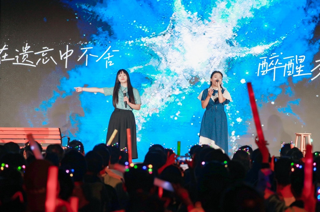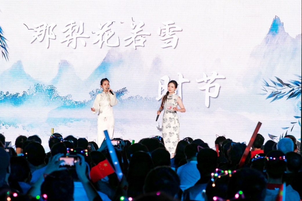 青春歌曲和經(jīng)典曲目的薈萃交融:《青春大概》《夜空中最亮的星》或青澀懵懂,或溫柔堅定,展示了追夢路上永不服輸?shù)尿湴僚c勵志,觀眾們一起揮舞手中的熒光棒、跟隨著歌手哼唱,倍感幸福充實!督裉臁贰洞和パ贰缎腋?燔嚒返冉(jīng)典歌曲更承載著北大學子對音樂與美的熱忱追求,為師生帶來一場視聽盛宴。