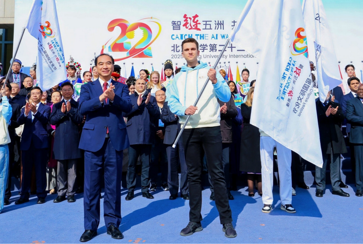 2025年10月18日,北京大學(xué)第二十二屆國(guó)際文化節(jié)在百周年紀(jì)念講堂廣場(chǎng)開幕。本屆文化節(jié)以“智鏈五洲,共繪燕緣”為主題,共設(shè)置“聆聽世界聲音”“縱享世界繽紛”“共賞世界靈韻”“感受世界文明”四大板塊、20項(xiàng)活動(dòng),吸引眾多中外嘉賓和師生參與。