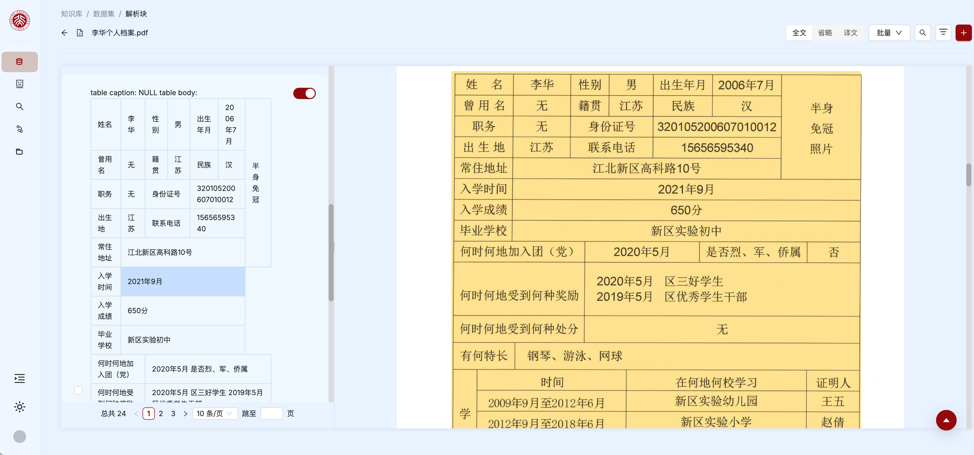 北京大學(xué)檔案館具身智能全域知識(shí)服務(wù)系統(tǒng)——檔案解析界面