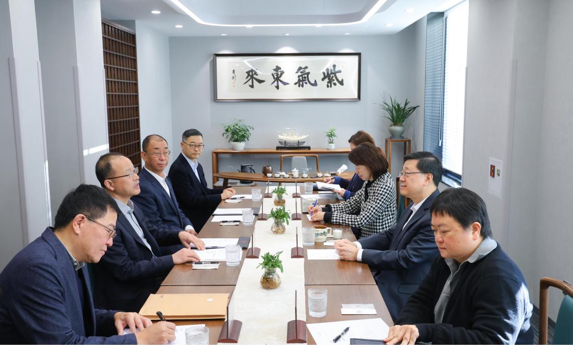 何光彩對李家超一行的來訪表示歡迎,對香港特別行政區(qū)政府及社會各界給予北大的關(guān)心和支持表示感謝。他表示,北京大學將貫徹落實國家“十五五”規(guī)劃,積極參與“北都大學城”建設(shè),聚焦人才培養(yǎng)、科技創(chuàng)新、交流合作等,助力香港建設(shè)國際創(chuàng)新科技中心,服務(wù)“一國兩制”實踐行穩(wěn)致遠。