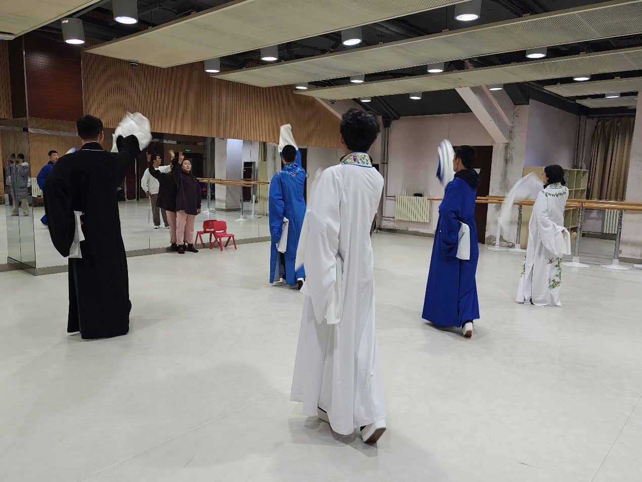 10次課程結(jié)束后,12月22日,學員們奔赴北方昆曲劇院進行合樂排練——這是舞臺呈現(xiàn)前的關鍵一環(huán)。鼓板、笛音與唱段相和,從課堂練唱到與樂隊老師合作演繹,學員們在專業(yè)院團的氛圍里,逐漸找到昆曲典雅含蓄的審美方向。