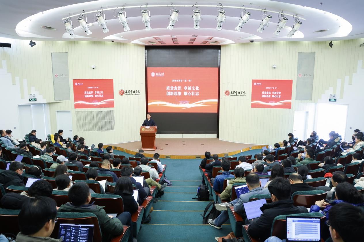 2026-01-18 09:57為深入學(xué)習(xí)貫徹黨的二十大和二十屆歷次全會精神,深刻領(lǐng)會習(xí)近平總書記對研究生教育工作的重要指示精神和全國教育大會精神,全面落實《教育強(qiáng)國建設(shè)規(guī)劃綱要(2024—2035年)》的戰(zhàn)略部署,建設(shè)一流研究生導(dǎo)師隊伍,北京大學(xué)第九屆新聘任博士生導(dǎo)師論壇于2026年1月12日在光華管理學(xué)院阿里巴巴報告廳舉行。校黨委副書記姜國華圍繞“以教育、科技、人才一體發(fā)展為牽引,全面提高博士生自主培養(yǎng)質(zhì)量”講授新聘任博士生導(dǎo)師第一課。200余名來自各院系的新聘任博士生導(dǎo)師參加論壇。研究生院副院長徐明主持論壇。
