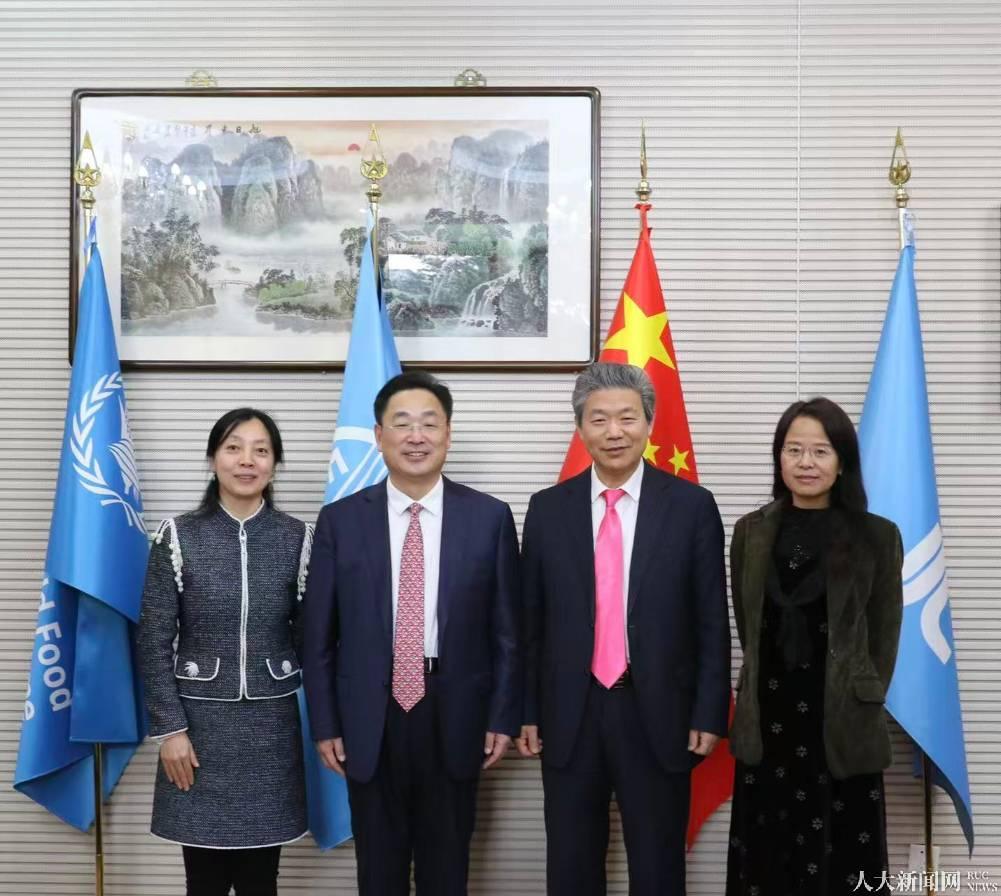 訪問意大利期間,朱信凱率團訪問聯(lián)合國糧農(nóng)組織總部,與總干事屈冬玉會晤,圍繞學術交流、人才培養(yǎng)、南南合作及全球糧農(nóng)體系轉型等領域進行深入交流。朱信凱介紹了中國人民大學在積極參與全球糧農(nóng)治理、主動培育全球治理人才等工作成效,并表示學校始終以建構中國農(nóng)林經(jīng)濟管理學科自主知識體系為己任,發(fā)布三農(nóng)學等重大研究成果,形成了“學術交流—成果發(fā)布—政策建言”三位一體的全球糧農(nóng)治理參與模式。希望雙方進一步深化在氣候智能型農(nóng)業(yè)、數(shù)字農(nóng)業(yè)、可持續(xù)糧食體系等前沿領域的學術合作,拓寬青年人才交流渠道,不斷提升中國青年參與全球事務的能力以及在全球治理事業(yè)中的影響力。屈冬玉高度肯定中國人民大學在農(nóng)林經(jīng)濟管理研究領域的學術地位和國際影響力,希望學校繼續(xù)發(fā)揮高校智庫力量,培育更多有志于從事全球糧農(nóng)治理的復合型人才,為全球糧食安全體系建設發(fā)揮積極作用。