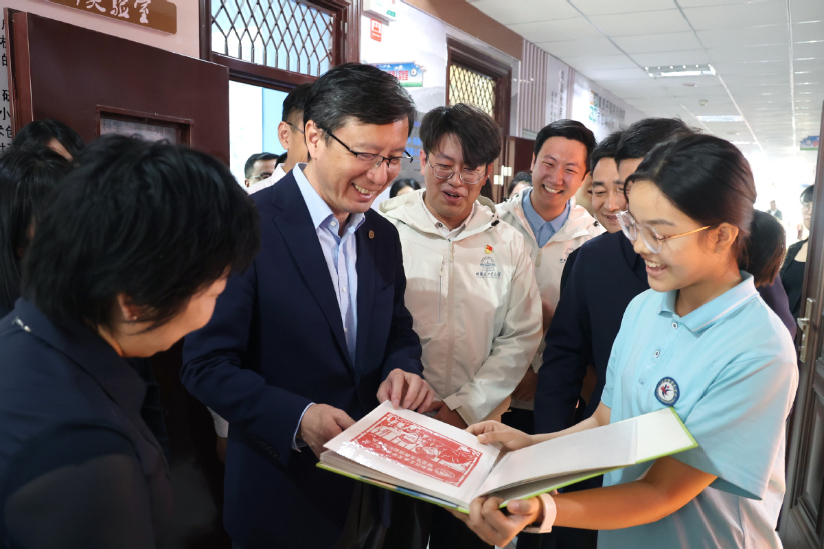 陳杰一行還來(lái)到支教隊(duì)員宿舍、哈工大-樂聚人工智能機(jī)器人實(shí)驗(yàn)室,詳細(xì)詢問隊(duì)員們的工作和生活日常,觀看了庫(kù)車三中學(xué)子送給哈工大的剪紙作品。